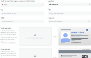 - Chọn quốc tịch và tải lên giấy tờ tùy thân (CMND/CCCD, hộ chiếu hoặc bằng lái xe).